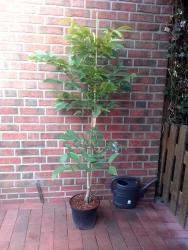 Die Pflanzenhöhe beträgt derzeit 130 bis 140 Zentimeter (Gesamthöhe inklusive des Topfes: 150 bis 160 Zentimeter).